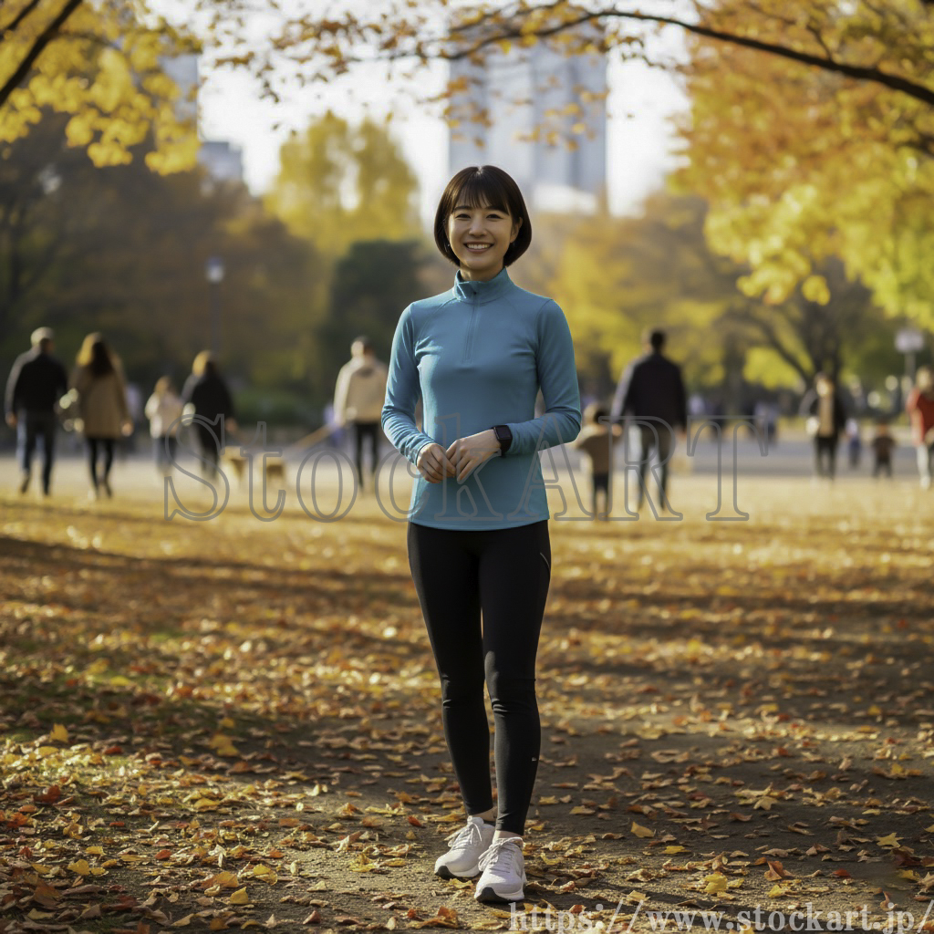 スタンダードAI生成JPGサンプル秋の公園でジョギング姿の女性