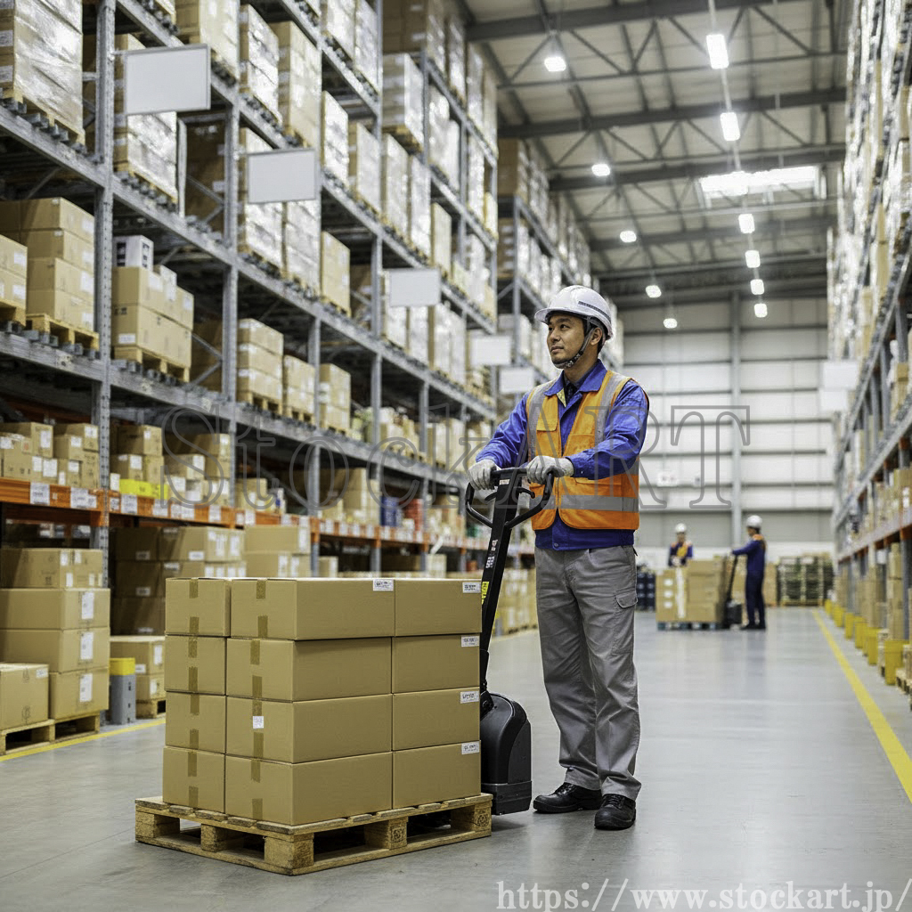 スタンダードAI生成JPGサンプル倉庫内作業をする男性