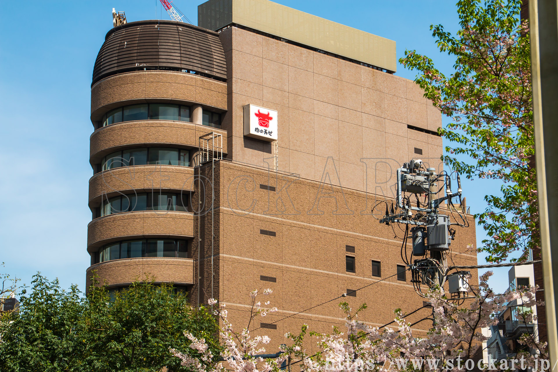 エディトリアルJPGサンプル万世橋際角肉ビルと桜 2024 東京都千代田区