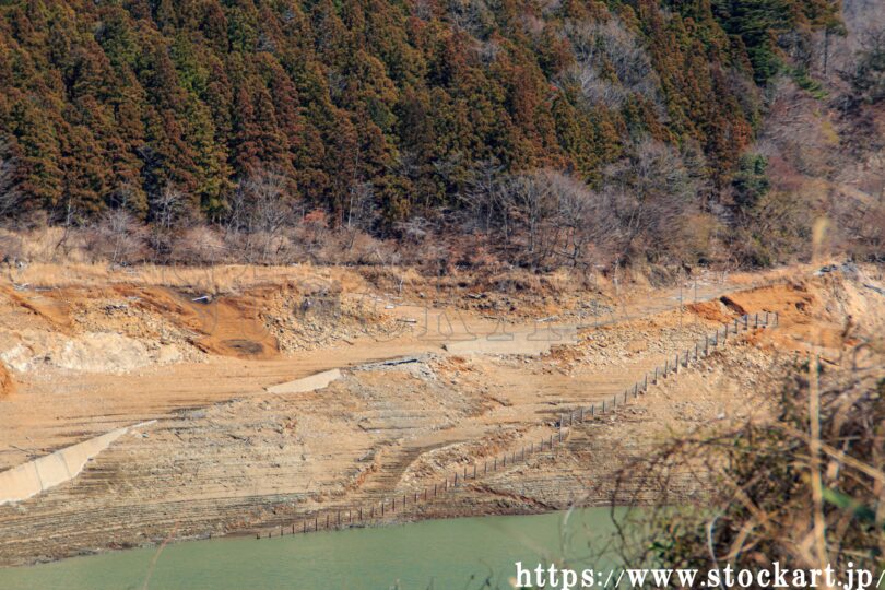 “減水した湖畔と冬の針葉樹林 2026” の口コミを投稿します